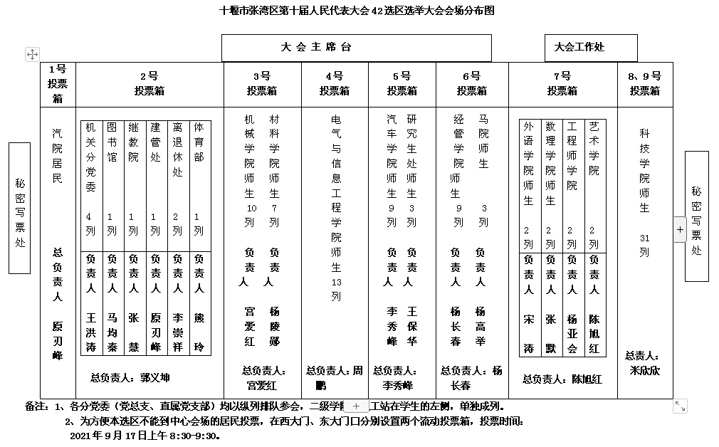 1、请各位选民务必于9月17日上午8:10分前,携带选民证、身份证、中性笔,佩戴口罩进场,并服从现场工作人员指挥。请各分党委(党总支、直属党支部)组织好本单位选民按指定区域排队参会。