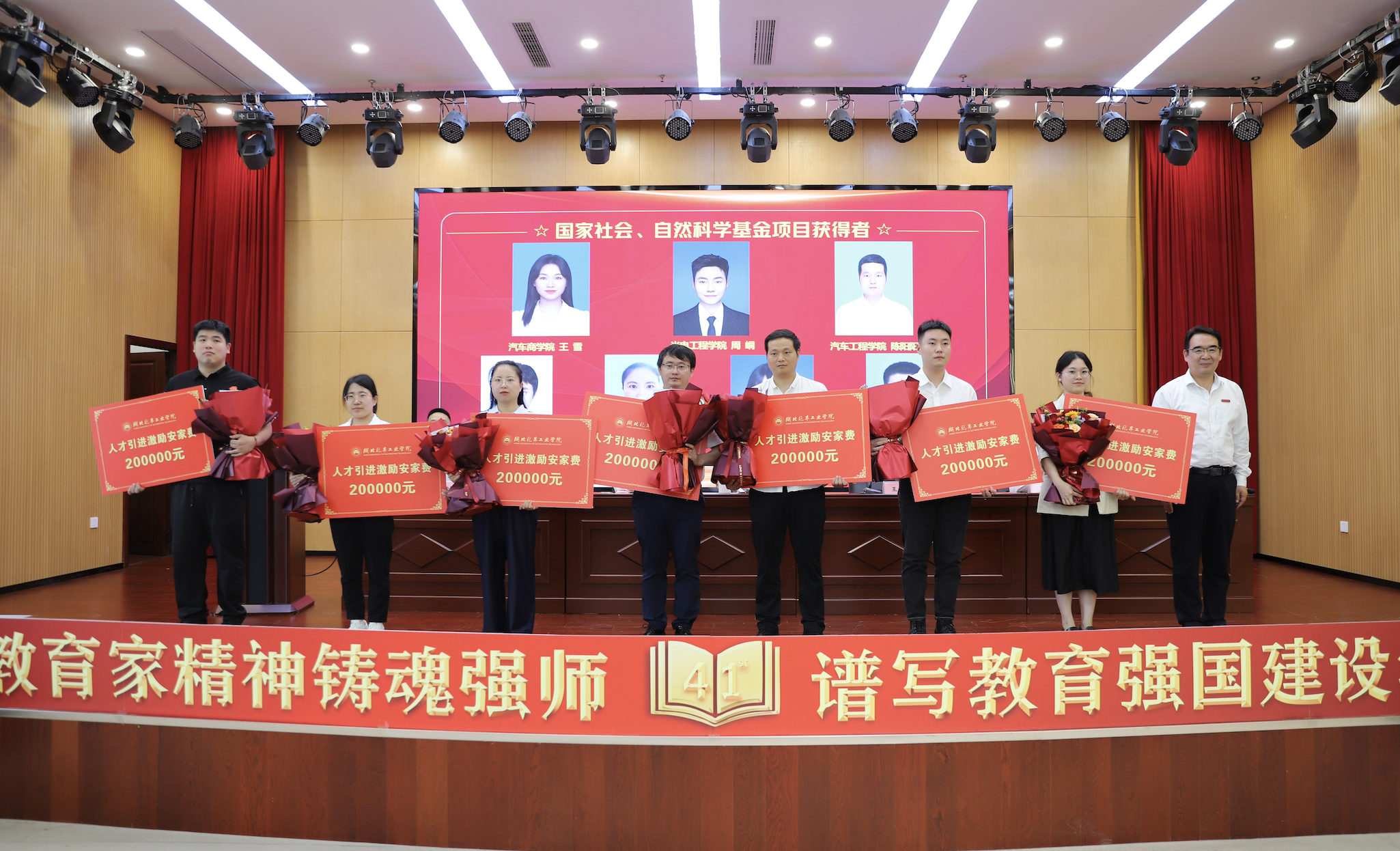 副校长张红霞宣读了《关于2025年教师节表彰的决定》。全体校领导为优秀工作者、优秀教师、2024年考核记功人员、从教三十年、从教四十年、荣休人员颁发荣誉证书;为优秀企业导师、师德标兵、优秀教师标兵颁发奖杯与绶带;为国家自然科学基金青年项目和国家社会科学基金青年项目获得者、教育部虚拟仿真实验教学项目入选案例团队、省级人才项目入选者颁发奖牌。一束鲜花、一本证书、一次握手,承载着学校对师者躬耕坚守的最深敬意。会场内,经久不息的掌声既是对先进、前辈的礼赞,更是对教育家精神的传承和接力。
