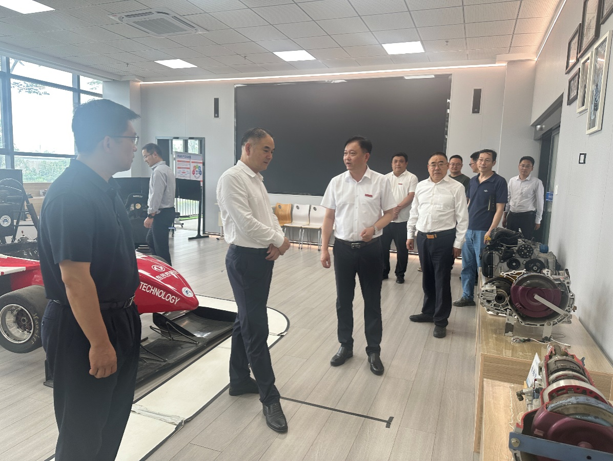 黄克立一行先后参观了基地实验室、教室、科技城学生宿舍等场所,详细了解了基地建设情况和师生学习生活现状。赵新军对黄克立一行的到来表示热烈的欢迎,他重点汇报了基地的建设和发展情况,向各位领导展示了基地在校企合作人才培养、学生实习就业、科研社会服务等方面取得的成绩,同时也向领导汇报了基地正处于改革发展的关键阶段,希望高新区政府继续加大对基地的指导与支持,助力基地实现高质量发展。