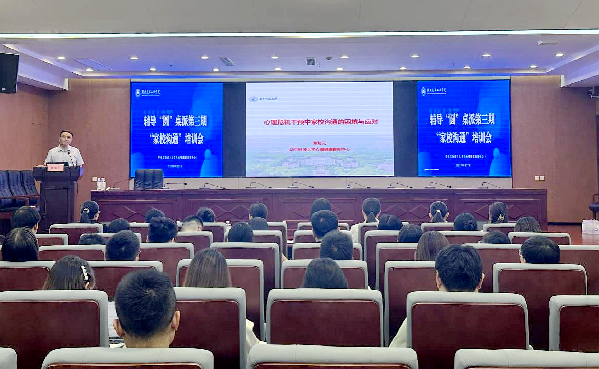 本网讯(文/图 王嘉丽、杜昕俊)6月27上午,华中科技大学心理健康教育中心主任、教育部普通高校学生心理健康教育专家指导委员会委员章劲元老师应邀做客我校辅导“圆”桌派,围绕《心理危机干预中家校沟通的困境与对策》开展专题讲座。学工部、各二级学院学工骨干等现场聆听。
