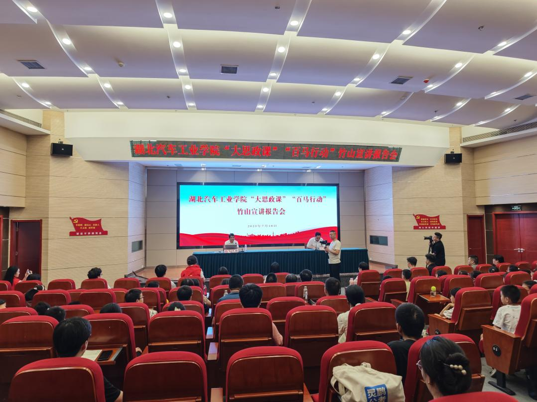 在竹山县新时代文明实践中心,马克思主义学院党委书记计毅波以《大力弘扬“三大精神”,为服务建成支点贡献力量》为题,深入阐释了“三大精神”相关论述、内涵价值等。在城关镇会场,院长黄永昌剖析了“三大精神”的价值与弘扬路径。此外,宣讲队成员还在竹山县卫健局、兴竹国投集团、城关镇刘家山村等9个会场宣讲,并开展送图书、文艺演出、法律志愿服务等惠民活动,获与会人员好评。